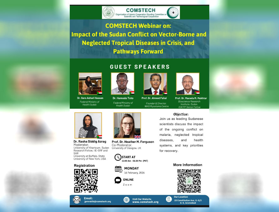 The webinar is organized by the Ministerial Standing Committee on Scientific and Technological Cooperation (COMSTECH) of the Organization of Islamic Cooperation (OIC).